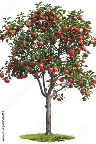 Fototapeta premium A full-grown apple tree with ripe red apples hanging from the branches