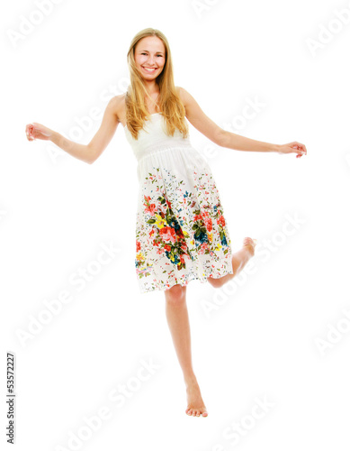 Fototapeta premium A full-length portrait of a young girl wearing a dress