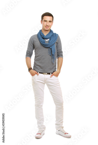 © lenets_tan, Fototapeta premium A full-length portrait of a young handsome guy