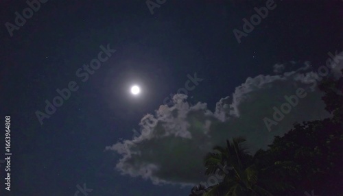 Naklejka premium A full moon shines brightly above a dark sky filled with clouds, casting a...