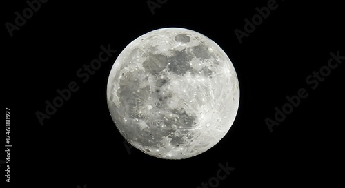 © startang141, Obraz premium A full moon shines brightly against a stark black sky, revealing detailed surface textures and craters.
