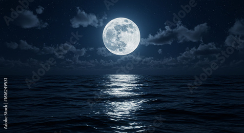 © Dipu5359, Fototapeta premium A full moon shines brightly over the dark ocean at night