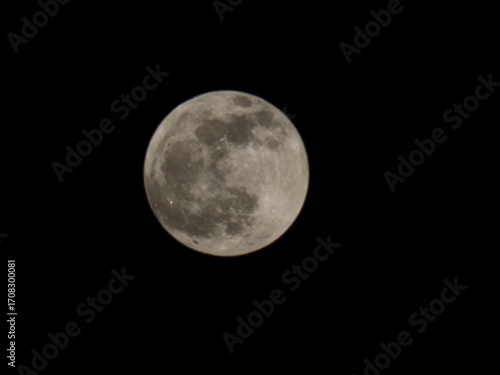 © shanid, Fototapeta premium A full moon with visible craters in a dark night sky.