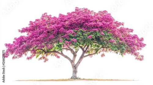 © Sampao, Fototapeta premium A fully grown kachnar tree with pink orchid-like flowers, isolated on a white background. No people, no text.