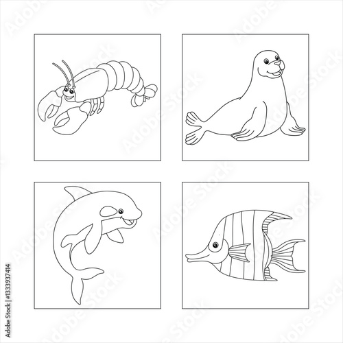 © MDMasudul, Obraz premium A fun and colorful illustration of a set of wedding rings, funny dogs, and a bride with various animal and cartoon elements, perfect for a kids' coloring book or playful design