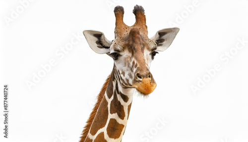 © netsay, Fototapeta premium A fun and quirky portrait of a giraffe, upside down, its long neck and curious face presented against a stark white background, a playful twist on wildlife photography