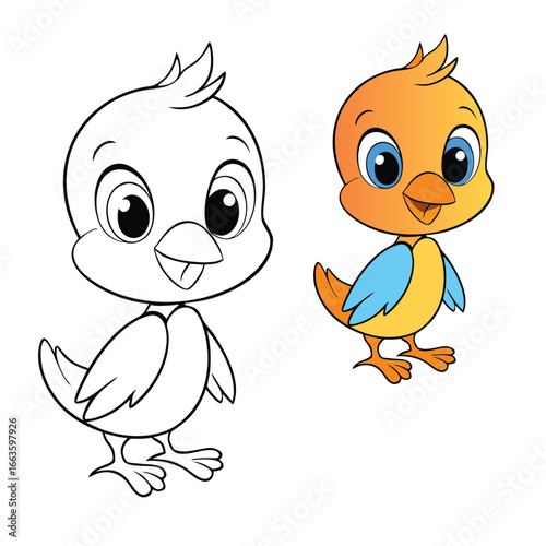 Fototapeta premium A fun cartoon bird vector coloring page featuring a cute, playful bird with simple outlines, perfect for kids and adults to enjoy creative coloring.