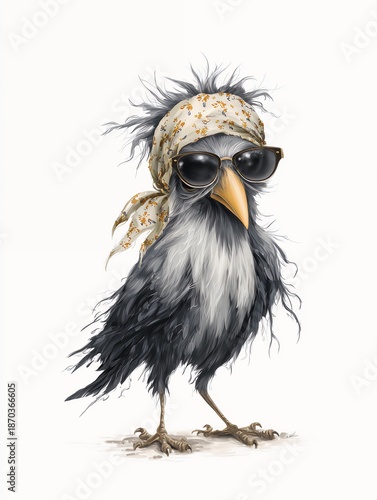© Sergei, Obraz premium a funny crow with glasses and a head scarf