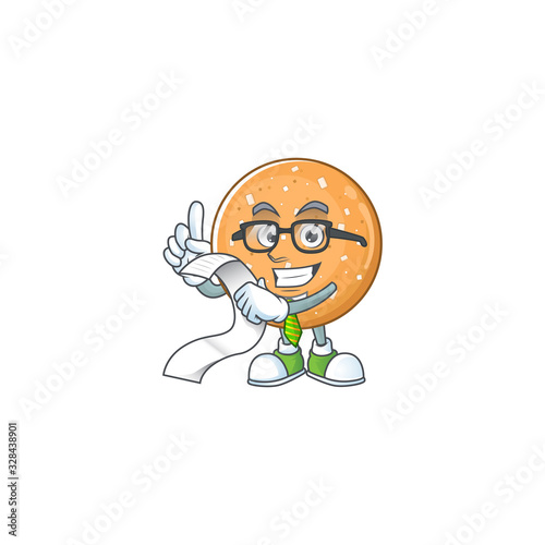 © kongvector, Obraz premium A funny face character of sugar cookies holding a menu