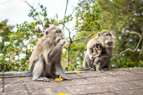 © belart84, Obraz premium A funny little macaque on the nature background. Bali island.