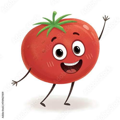 © Parisha, Fototapeta premium A funny red tomato cartoon character with a happy smile is an isolated vector illustration of this healthy fruit or vegetable