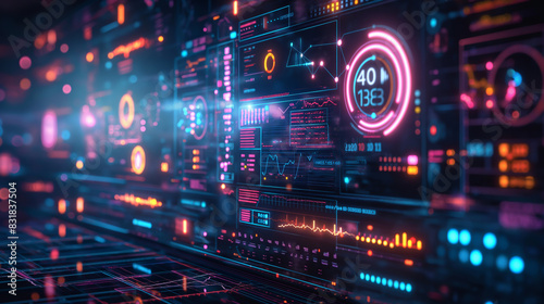© VRAYVENUS, Fototapeta premium A future with holographic medical data, charts and graphs