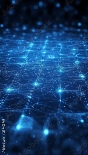 © Lora_ecology, Obraz premium A futuristic abstract background featuring a grid of glowing triangles on a deep blue and black backdrop