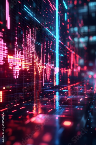 © kinara art design, Obraz premium A futuristic abstract background with glowing lines and digital data.