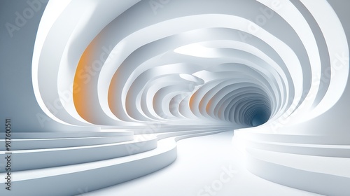 © Aris Suwanmalee, Obraz premium A futuristic, abstract interior with smooth curves and soft lighting, creating a sense of depth and tranquility.