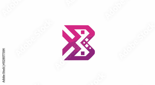 Fototapeta premium A futuristic, abstract letter B logo in purple and pink gradients, with fragmented or pixelated elements.