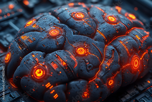 Fototapeta premium A futuristic and abstract digital rendering of a human brain with glowing...