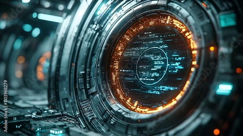 © Natcharat, Fototapeta premium A futuristic art toy display featuring metallic and holographic designs, with a digital screen backdrop