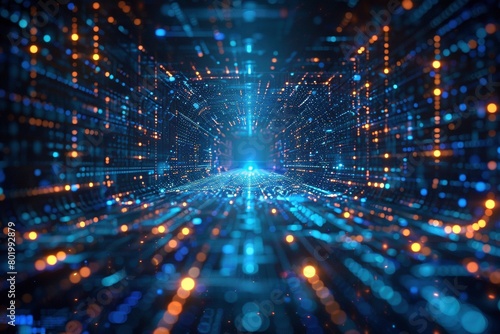 © Martin, Naklejka premium A futuristic business concept visualization: a holographic display with intricate, glowing neon blue lines forming complex patterns on a dark, isolated background.