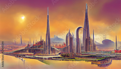 Obraz premium A futuristic city of the future.