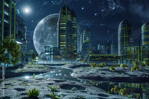 © Kateryna, Obraz premium A futuristic city on the Moon