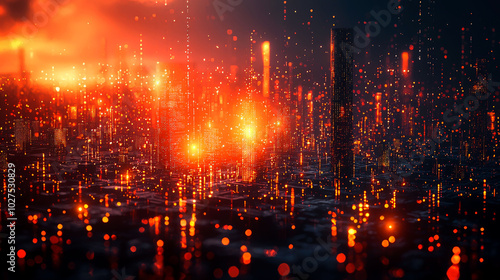 Fototapeta premium A futuristic city skyline with a glowing red sky, creating an apocalyptic...