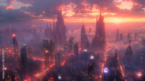 © Taylor K, Fototapeta premium A futuristic cityscape at night, with towering skyscrapers