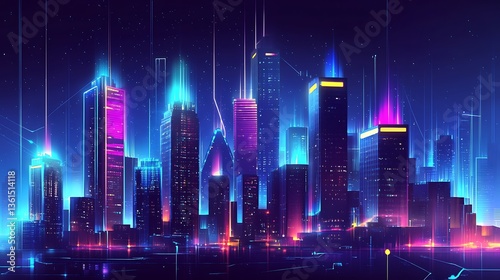 Obraz premium A futuristic cityscape at night, with towering skyscrapers and neon lights...