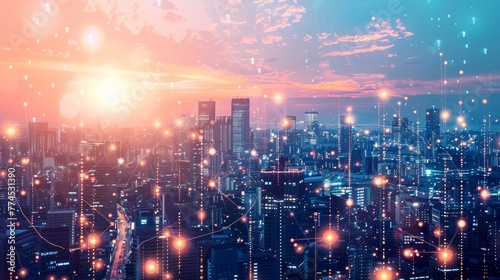 Fototapeta premium A futuristic cityscape bathed in the glow of data co AI generated illustration