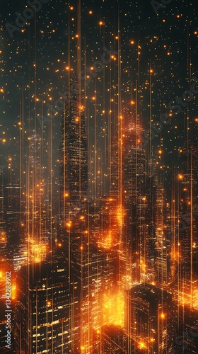 Obraz premium A futuristic cityscape illuminated by glowing lights and particles, creating...