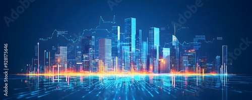 Fototapeta premium A futuristic cityscape illuminated by neon lights and data streams
