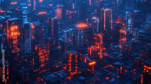 © Arif, Fototapeta premium A futuristic cityscape illuminated with red and blue architectural lighting