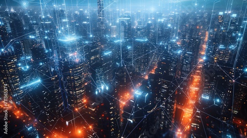 Obraz premium A futuristic cityscape immersed in a network of digital pathways