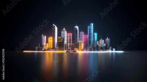 Fototapeta premium A futuristic cityscape with glowing transportation growth data projected on skyscrapers, and pickups navigating futuristic roads, Sci-fi, Neon highlights,