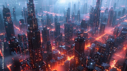 Fototapeta premium A futuristic cityscape with holographic pathways