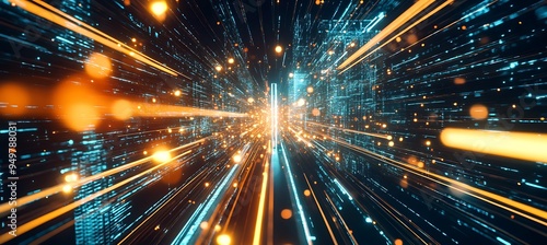 © Huzaifa, Fototapeta premium A futuristic cityscape with interconnected holograms and neon-lit pathways