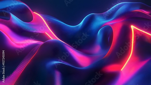 © Mr image, Fototapeta premium 64. "A futuristic 3D geometric design with smooth, undulating surfaces and a gradient of neon hues
