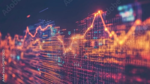 © วรรณภา มะโนศรี, Fototapeta premium A futuristic D pie chart with metallic segments, spinning in mid-air over a dark background with digital lines and light beams, illustrating advanced data analytics.