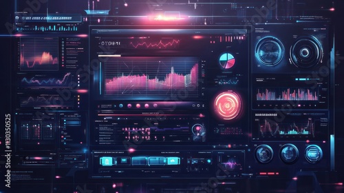 Obraz premium A futuristic dashboard displaying data analytics and visualizations.