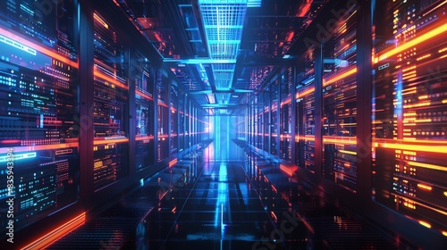 Obraz premium A futuristic data center, humming with the energy of a million transactions...