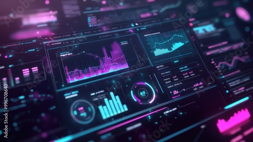 Fototapeta premium A futuristic data dashboard displaying graphs and analytics in vibrant colors.