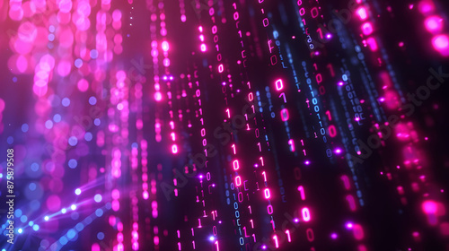 Obraz premium A futuristic digital abstract background featuring neon pink and blue binary...