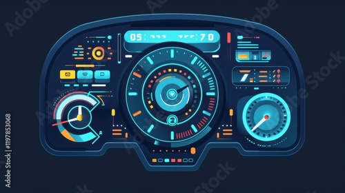 Fototapeta premium A futuristic digital dashboard displaying various gauges and indicators.