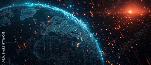 Obraz premium A Futuristic Digital Earth with Red Streaks and Glowing Lights