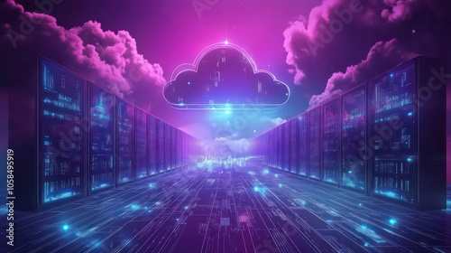 Fototapeta premium A futuristic digital landscape featuring cloud computing and data flow.