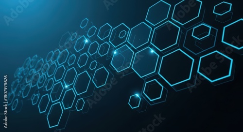 Fototapeta premium A futuristic digital landscape with interconnected hexagonal patterns glowing in blue