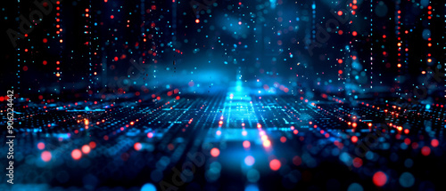 Fototapeta premium A futuristic digital landscape with vibrant blue and red lights, representing...