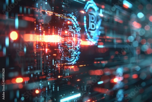 Obraz premium A futuristic digital world revolving around cryptocurrency, blockchain...