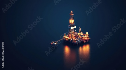 © Sawat, Fototapeta premium A futuristic drilling rig machine extracting resources on a deep navy background.
