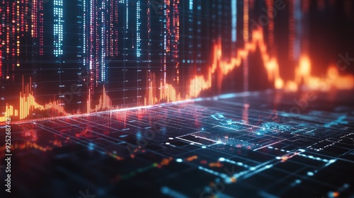 Naklejka premium A futuristic economy trend graph with digital overlays, highlighting key...